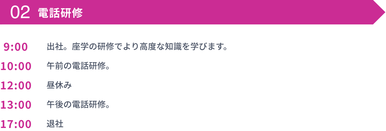 業界の未経験者でも、他の業界で営業経験があれば応募可能です。テレアポ経験者や新規開拓営業経験をお持ちの方は優遇いたします。